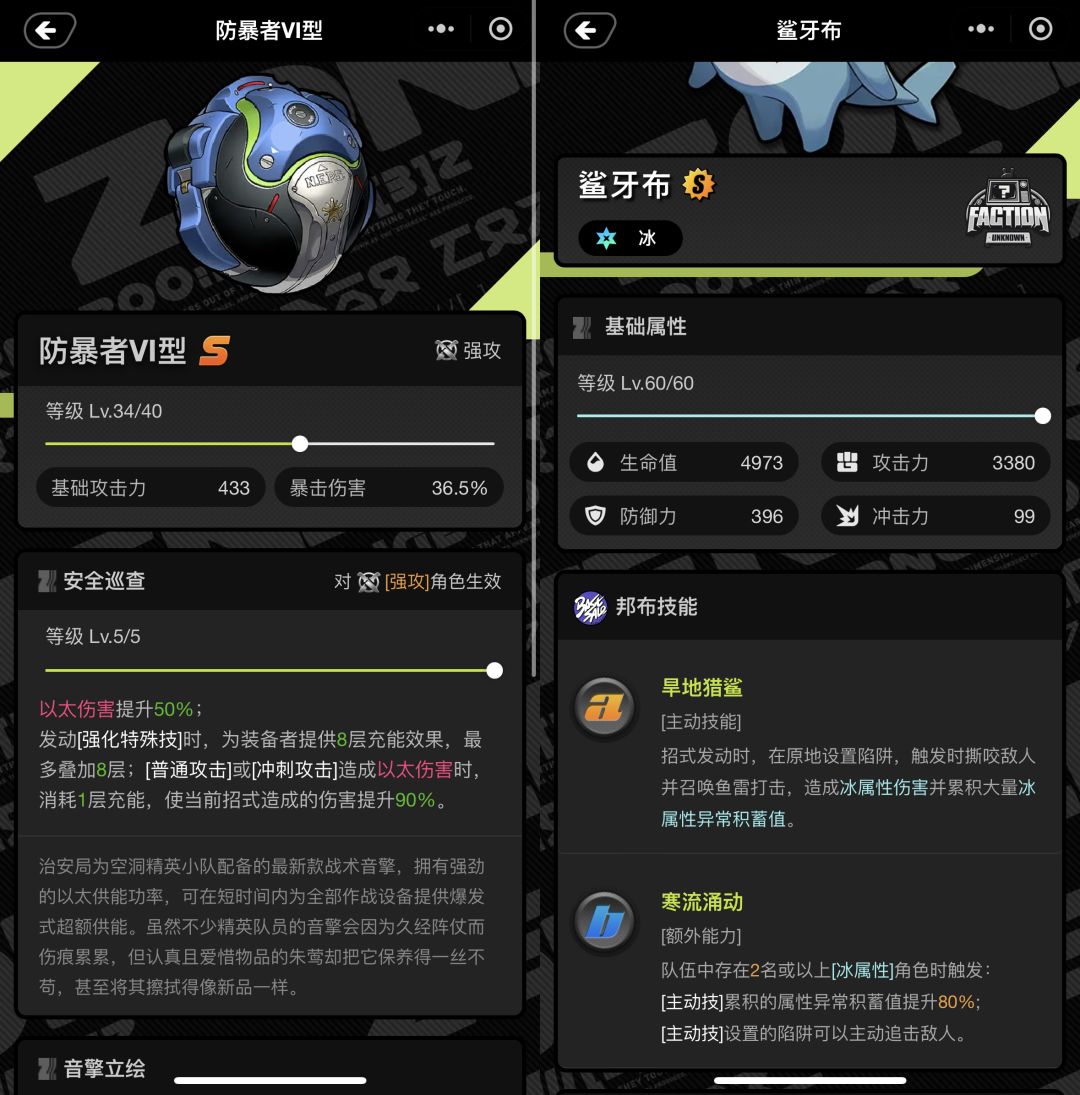 收录全部音擎/邦布的数据,包括不同等级与精炼下的数值、加成和技能效果。