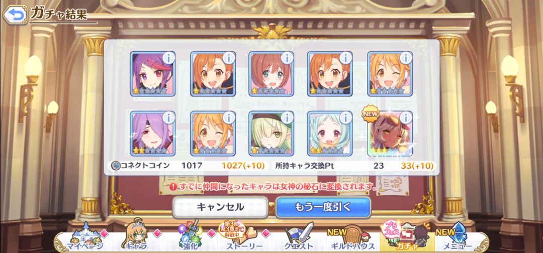 完全不知道本次是PrincessFes,加上送的公会战结算才1W出头,没想到时隔好几个月终于抽到限定了,33抽解决