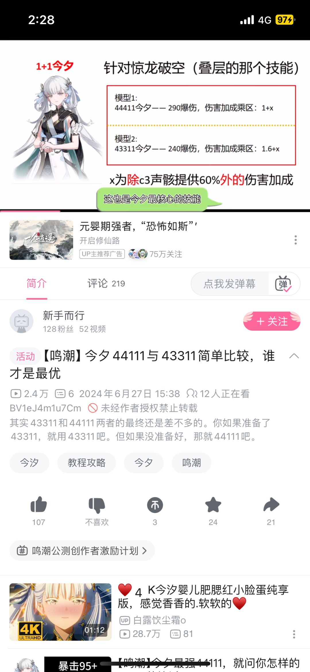 3.后期环境,现在所有6命今汐大佬,不管是主播,还是做攻略的up主,实测以及数据,全都是44大于43,因为增伤稀释了!而你深渊中间层的60增伤buff,就跟这个同理!而且你声骸的各种技能增伤,声骸的套装,甚至队友声骸提供的增伤,全都是一个乘区的!而你实战,不就是吃满这些增伤,然后来一波大的吗?很多拉表仙人最搞笑的就是,可能根本不知道实战是要吃这些buff吧?