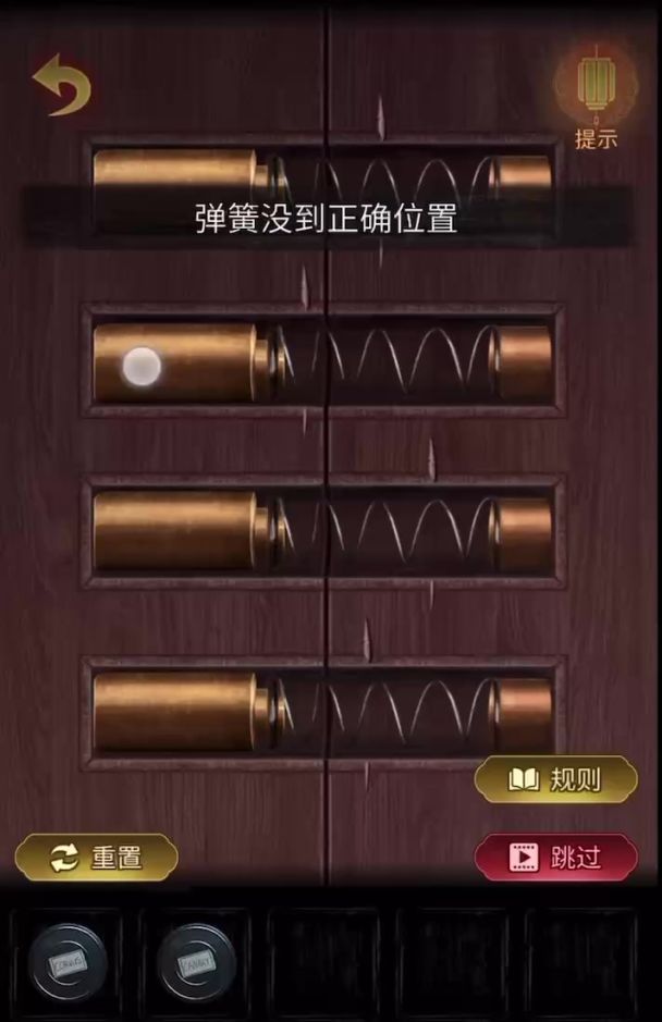 点击置物架上层的红色盒子,结合屏风线索,调整如图,出现新的机关