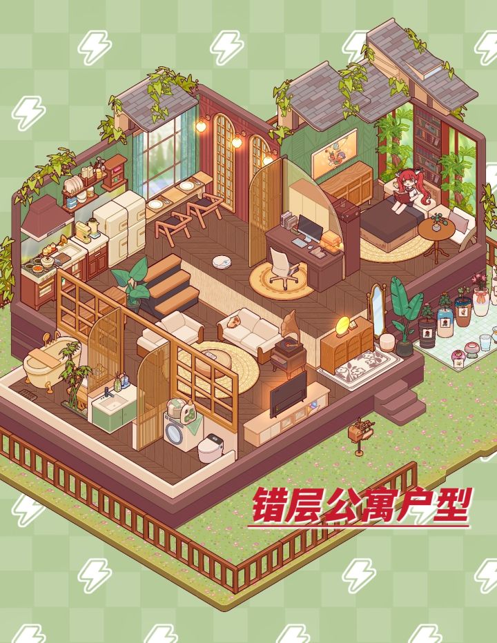 与大家分享一下错层公寓户型的装修!依旧是按照原本的户型为基准,再进行加工。