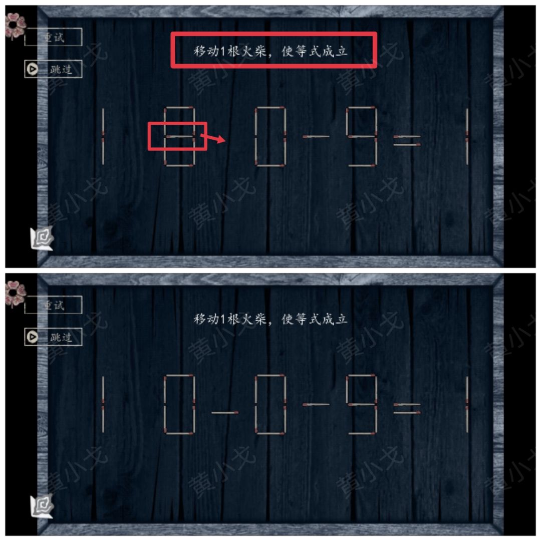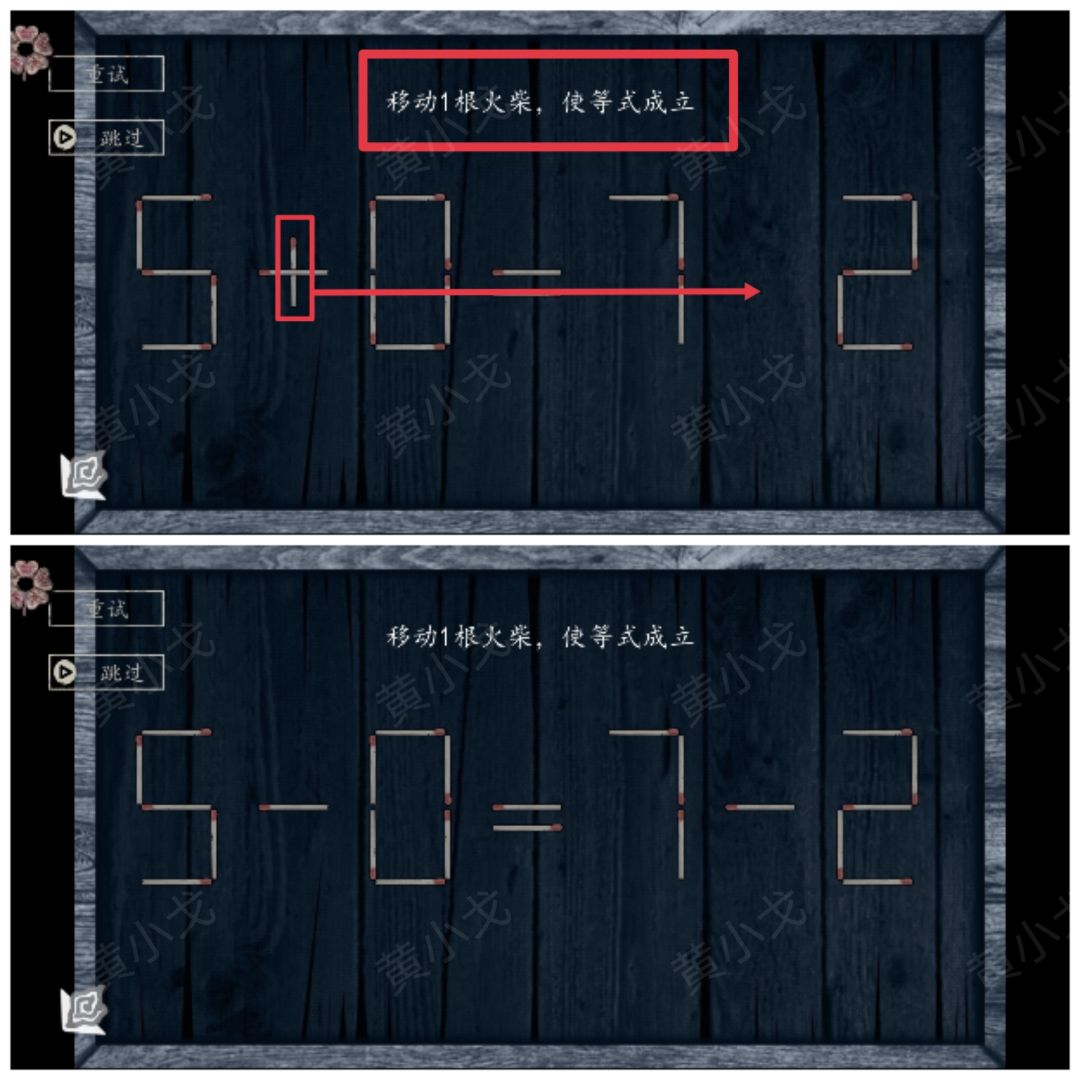 6.点击完成火柴之谜小游戏(移动1根或2根火柴,使等式成立)(