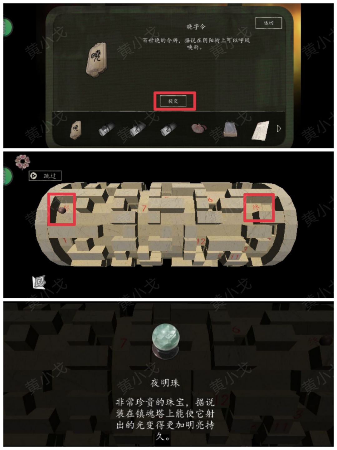 3.点击天锁,出示【晓字令】;点击完成天机之锁小游戏(起点-17-4-14-12-终点);获得【夜明珠】