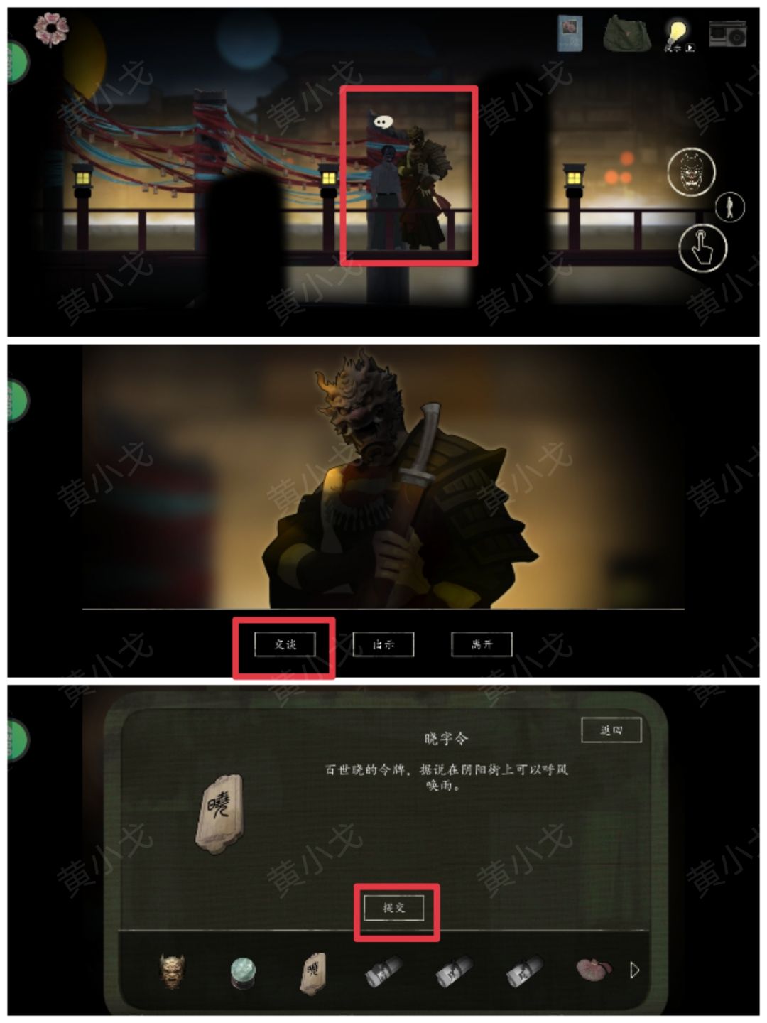 5.(东街区)点击与玄武交谈,出示【晓字令】