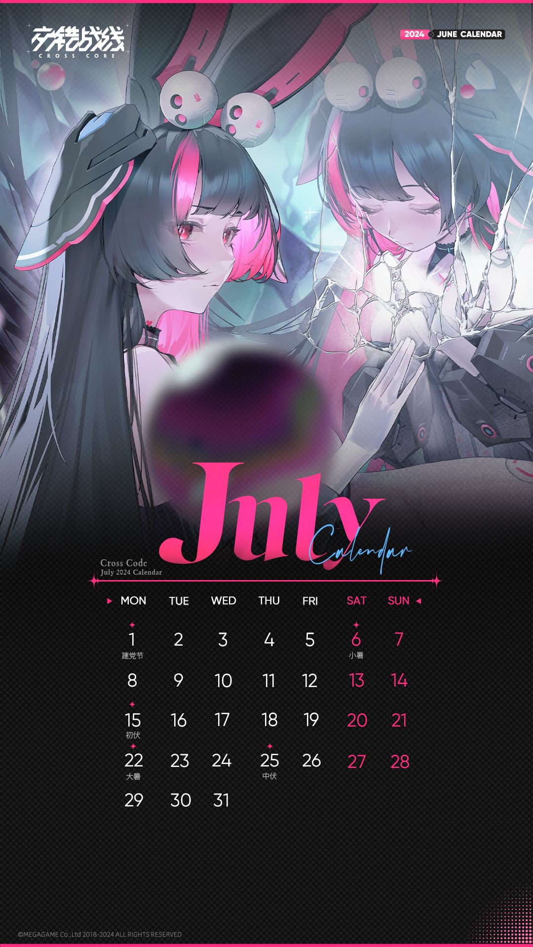 亲爱的总队长,七月日历壁纸已掉落~