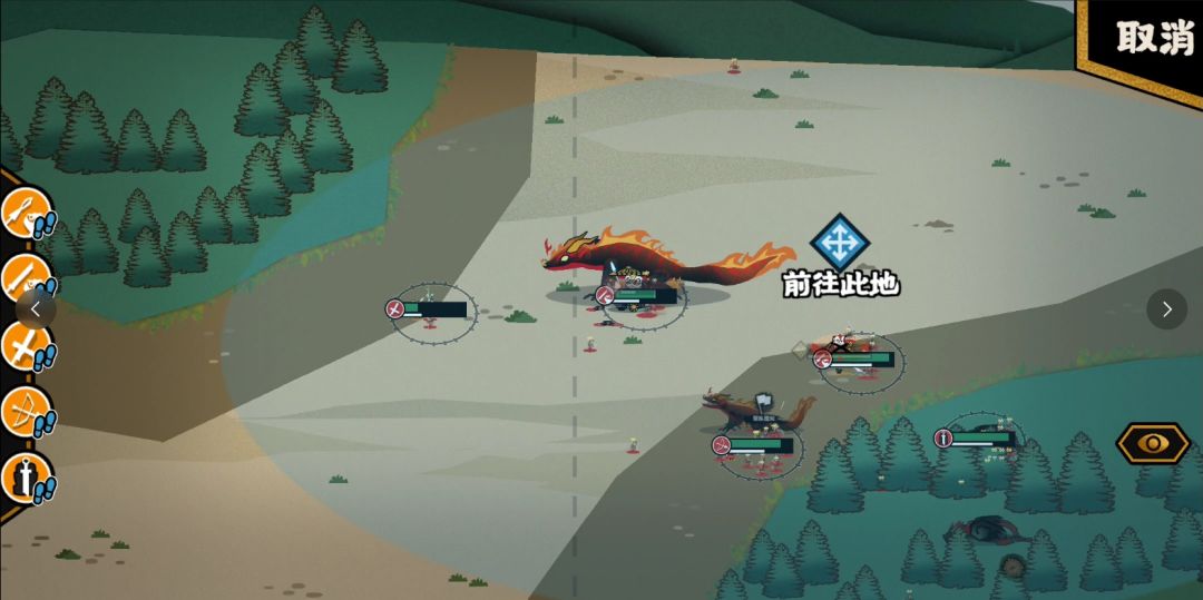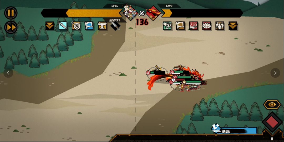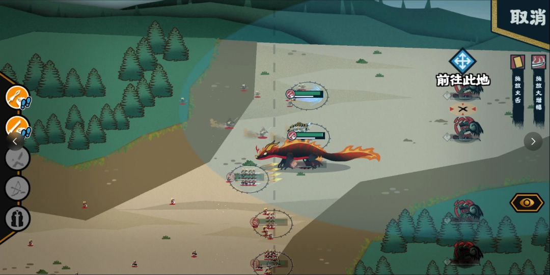 接下来只剩火之凶兽,在交战的地方把剩余的鼓舞、驻停都用出来降低战损就可以了。凶兽溃逃的时候我们也可以用进退回到鼓舞的范围,轻松结束战斗。