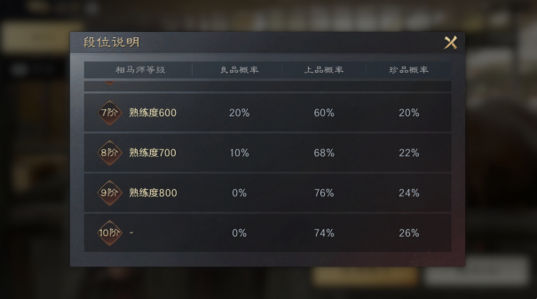随着相马次数的增加,相马师的等级也会提升。当等级提升至8级后,有小概率能相出绝世名驹。