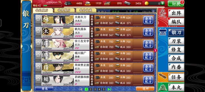 这个这个公式直接单抽出鹤丸,超激动的,然后又出第一把大太刀,建议大家都试试这个玄学公式