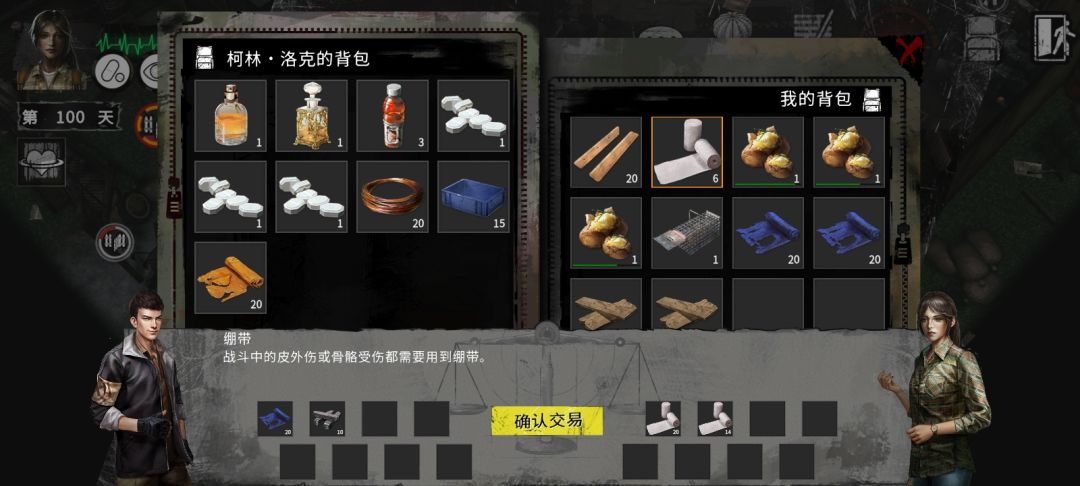 第三章会有个叫柯林•洛克的商人帮看门,每天可以从他那换10个钢和20布20木板,每天最少要有两样不然不划算,只有刚那就返回菜单重新进。