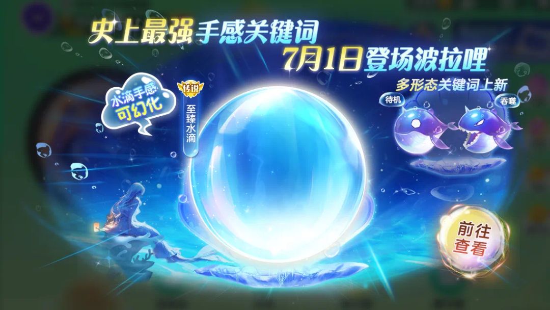 -豪华通行证点击直升80级,立刻获取首款可幻化水滴关键词「至臻水滴」,打造只属于你的水滴皮肤!-任务全面减负,极品关键词「星空水母」系列皮肤轻松入手~