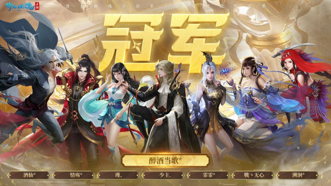 在第十四届跨服明星赛中,【醉酒当歌*】战队斩获冠军!