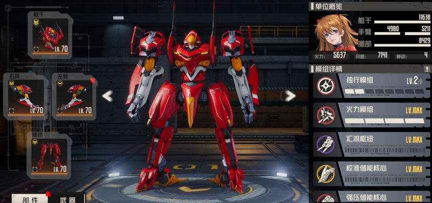 又如破晓者-02(二号机),虽然没有固定武装,但一样有独特的模组组合,保留有常规的八级模组和主四级模组,而将副四级模组替换成了4个独立模组