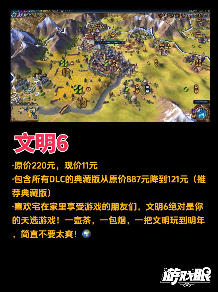 • 喜欢宅在家里享受游戏的朋友们,文明6绝对是你的天选游戏!一壶茶,一包烟,一把文明玩到明年,简直不要太爽!🌍