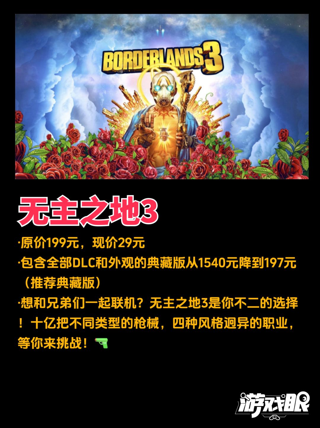 • 想和兄弟们一起联机?无主之地3是你不二的选择!十亿把不同类型的枪械,四种风格迥异的职业,等你来挑战!🔫
