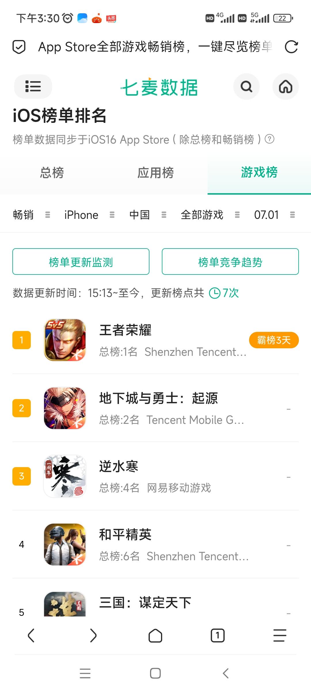 7月1日,我又去查看了一下ios游戏畅销排行榜,结果不出所料。