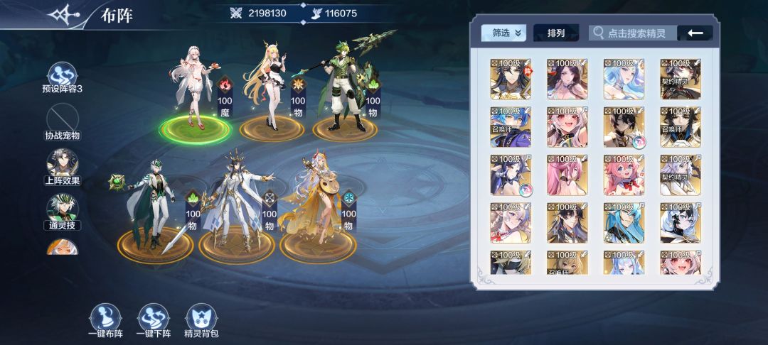 阵容搭配:王序加帝释天加水序加年费加空系或者水系强力精灵