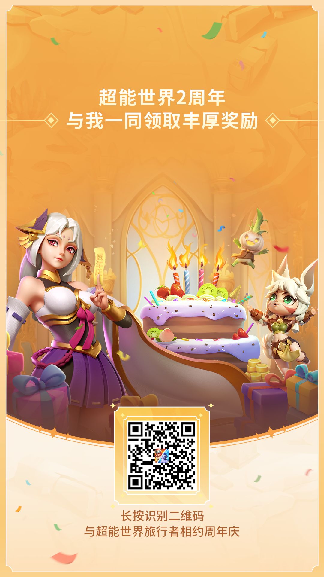 周年庆生日派对即将开启,邀您参与预约活动,共赴新征程。呼朋唤友一起参与活动,领取阵营召唤卷轴、进阶石、超能晶钻等海量福利!