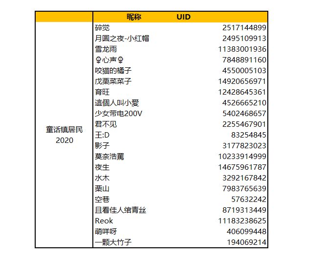 恭喜以下卡牌大师获得荣誉称号【童话镇居民2020】。