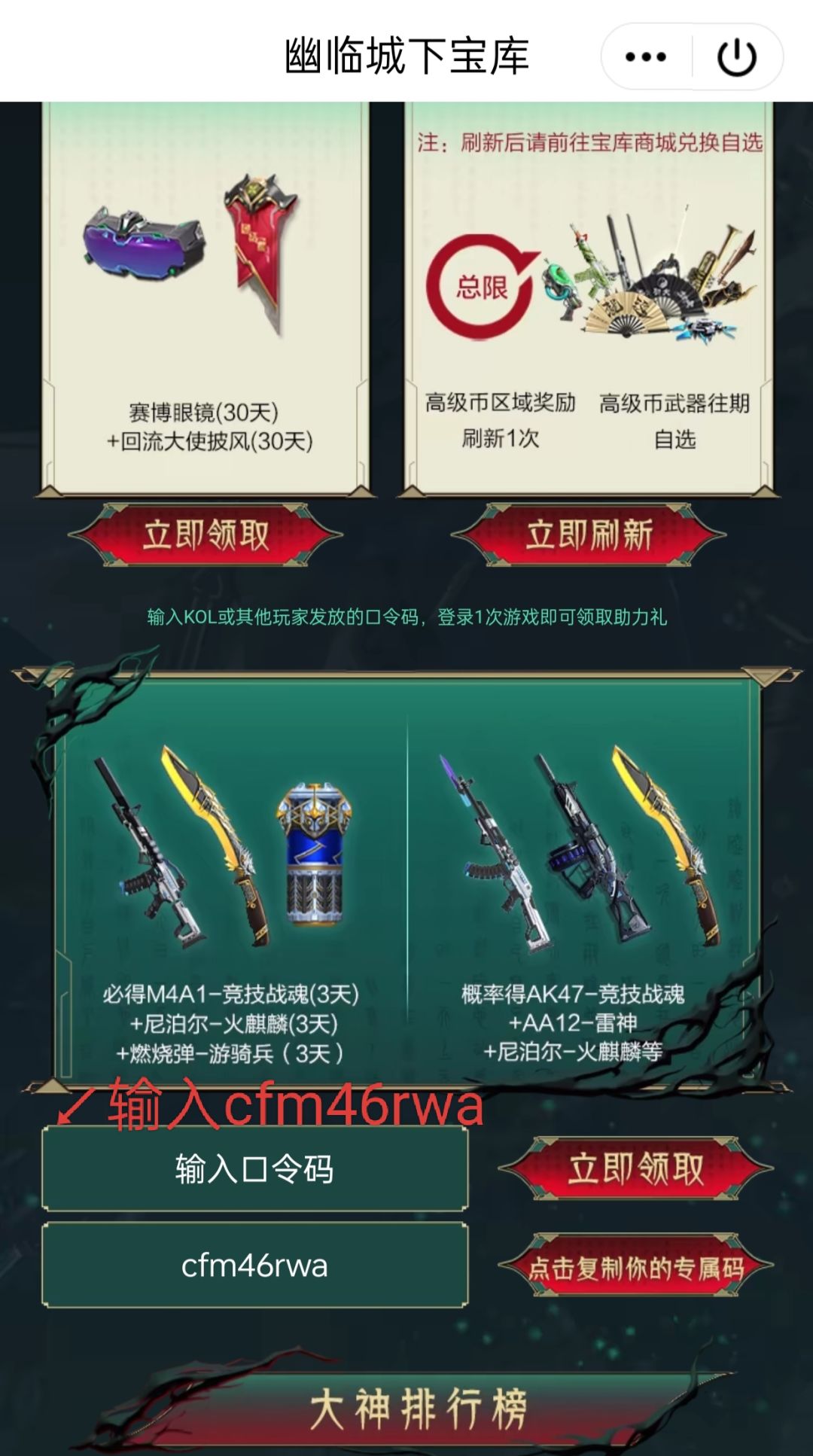 71宝库最欧口令码:cfm46rwa