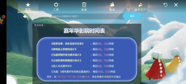 嘉年华任务时间,影院时间表