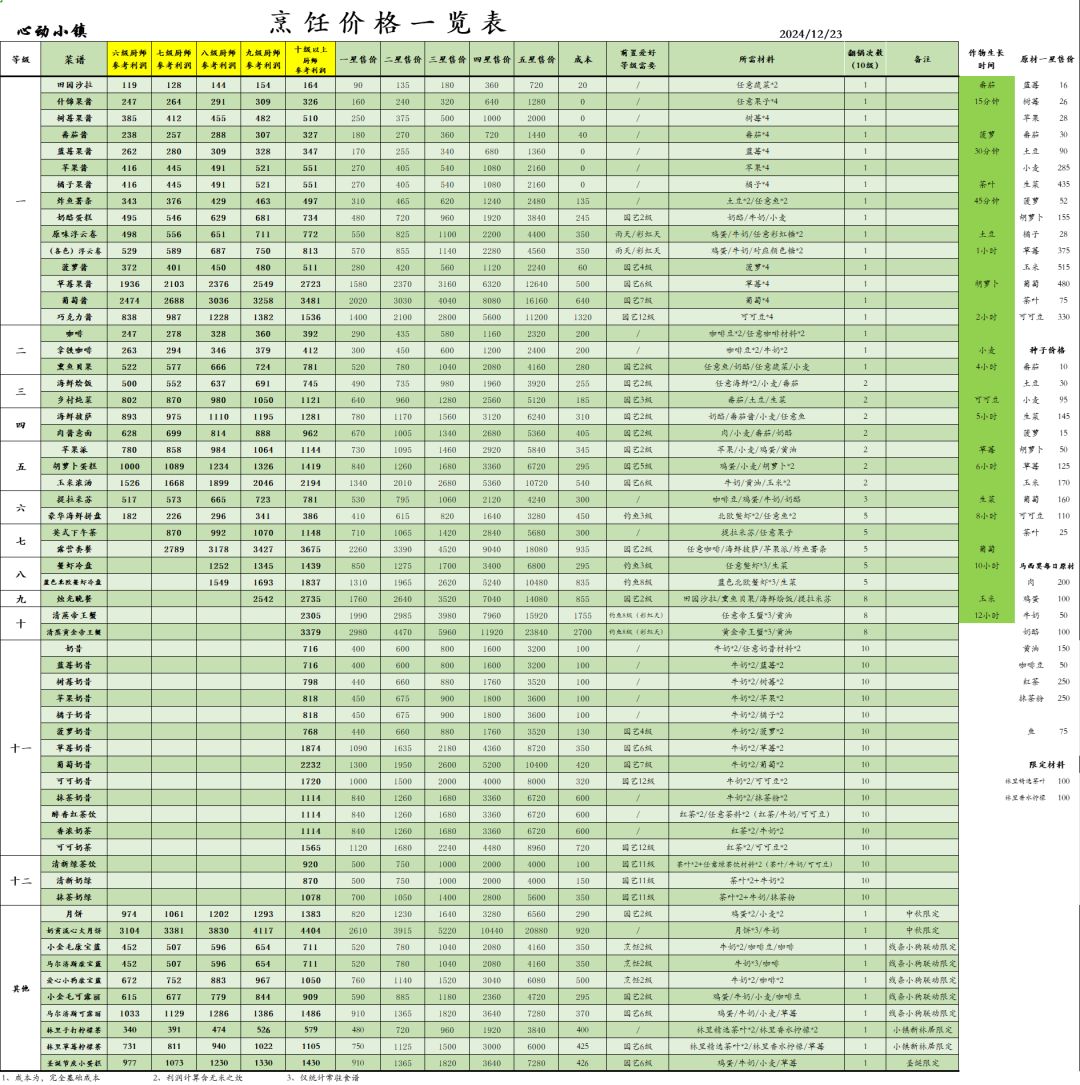 3.七级烹饪,535份菜倍率为一星价格1.5545±0.12。