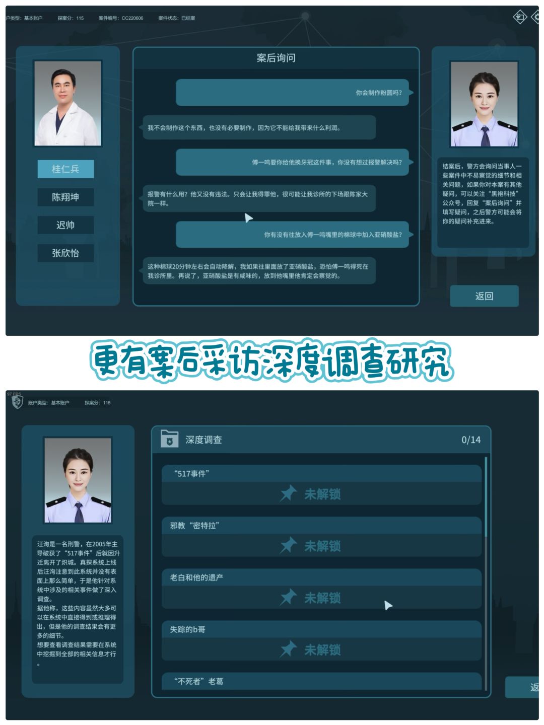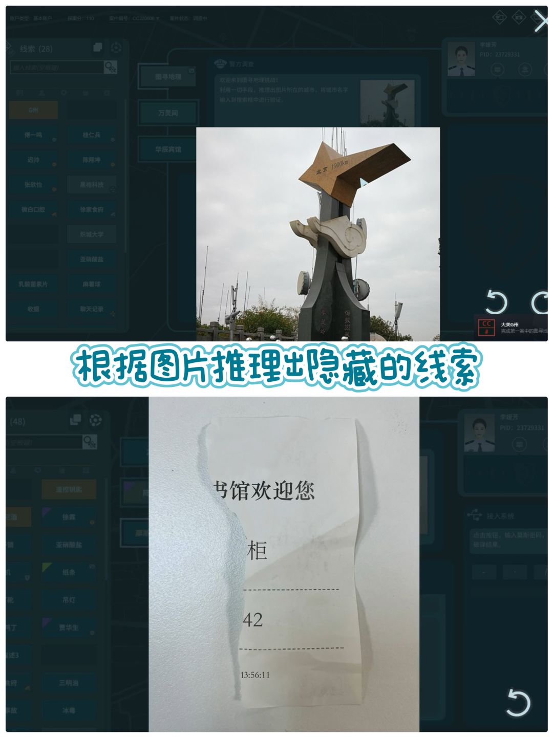 - 作为特邀测试者,你需要检查每个案件的所有现有线索和信息。