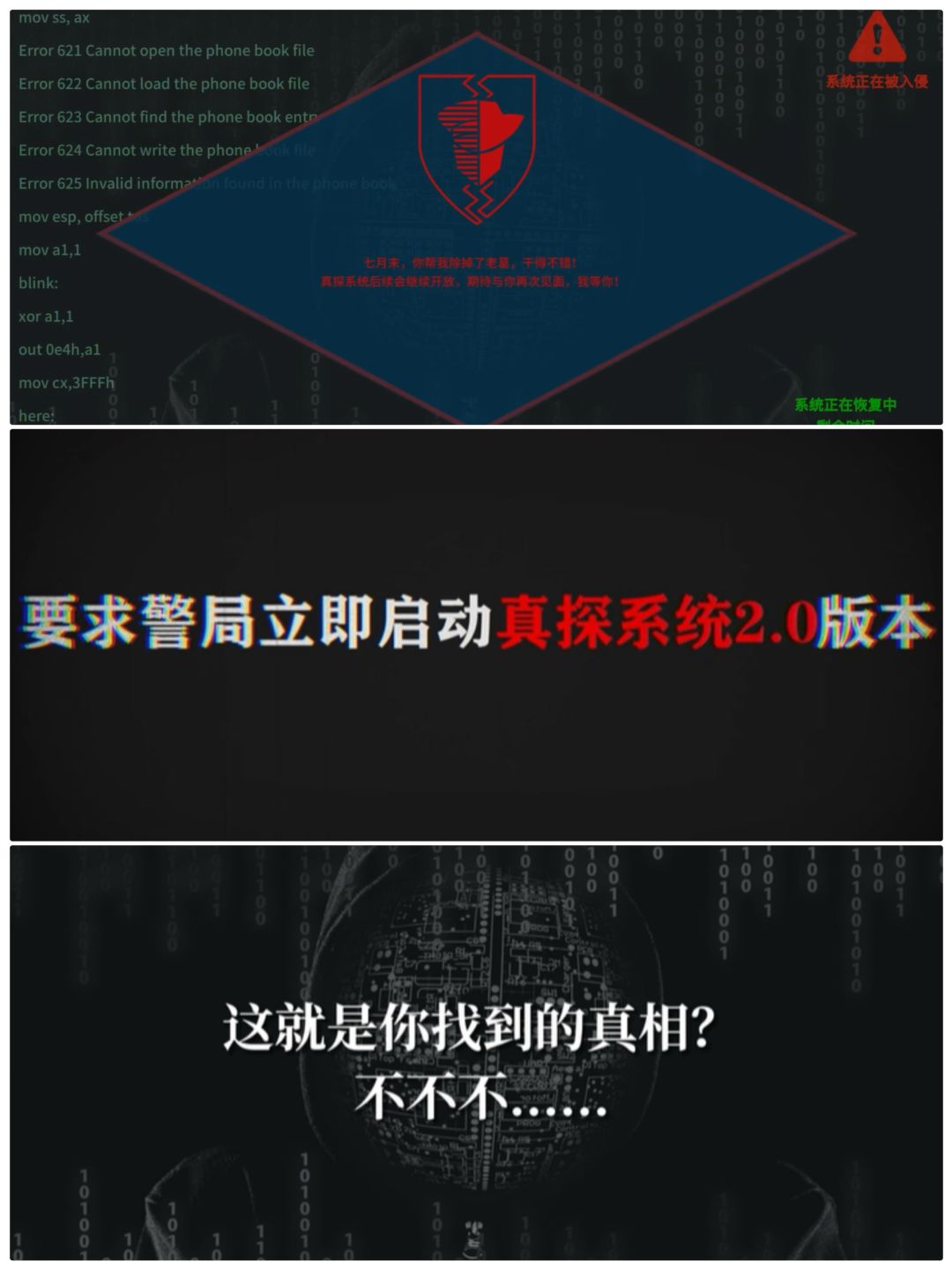 - 收集所有信息后,推理出整个案件的线索和情节,解答系统问题,解决案件。