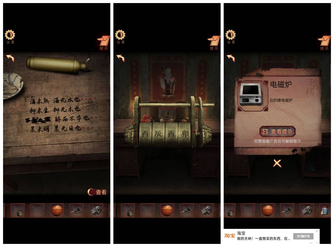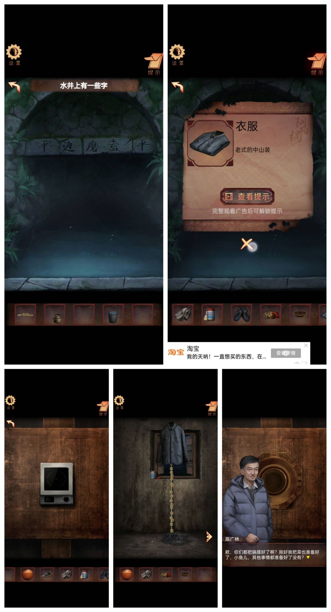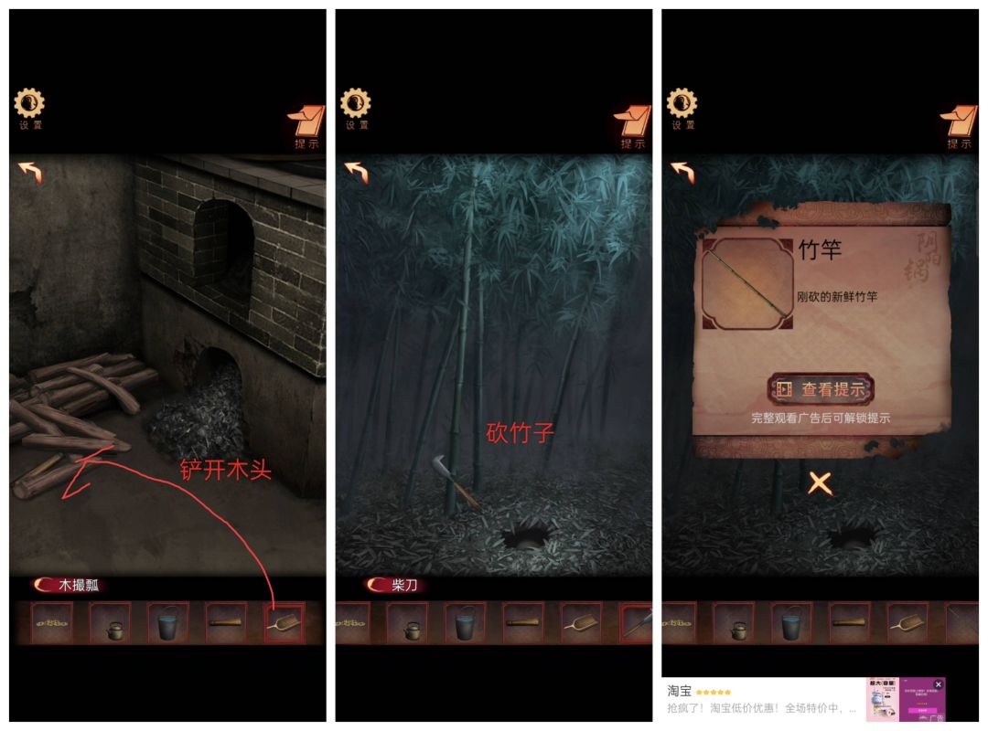 按照水面上的字再敲锣获得衣服,电磁炉放桌上铜锅摆上,竹竿纸钱全放上就结束。
