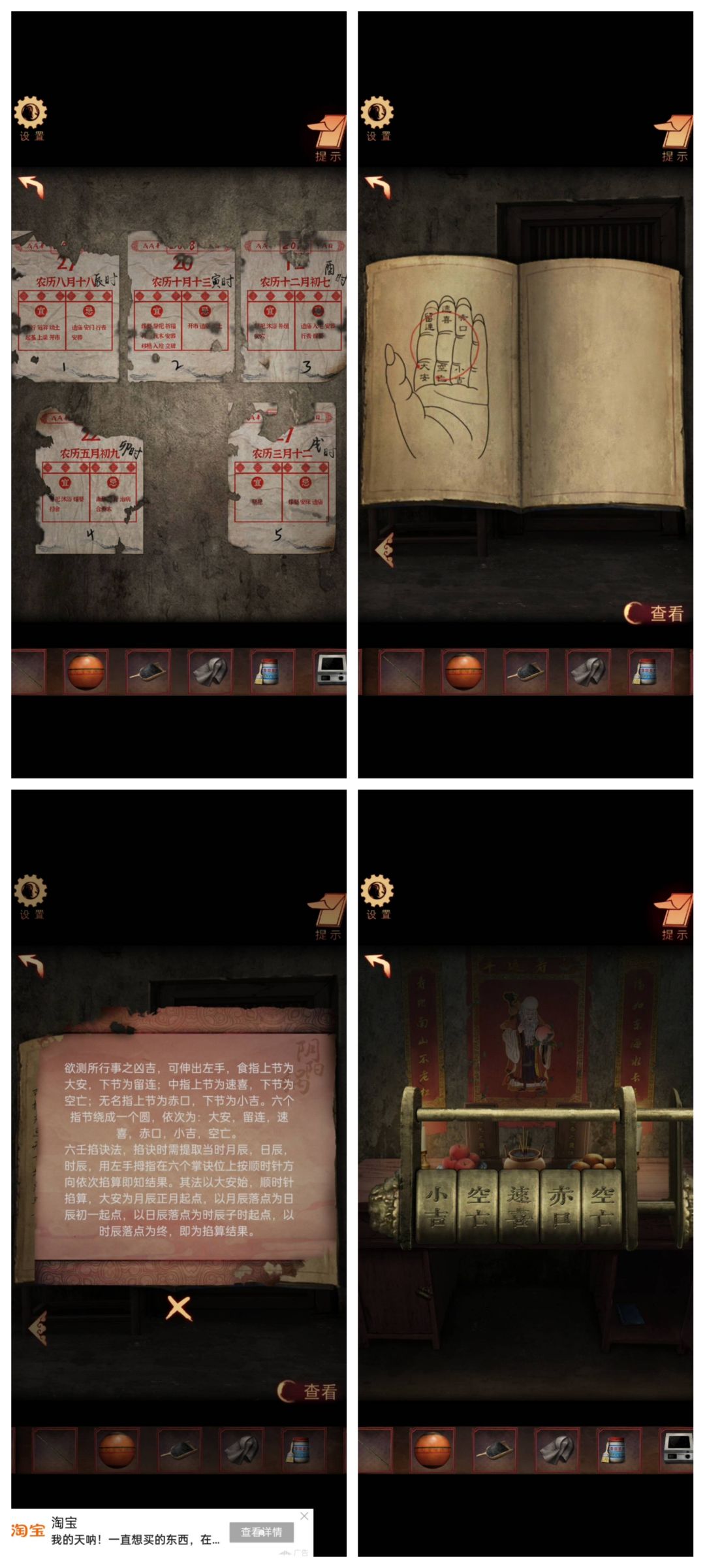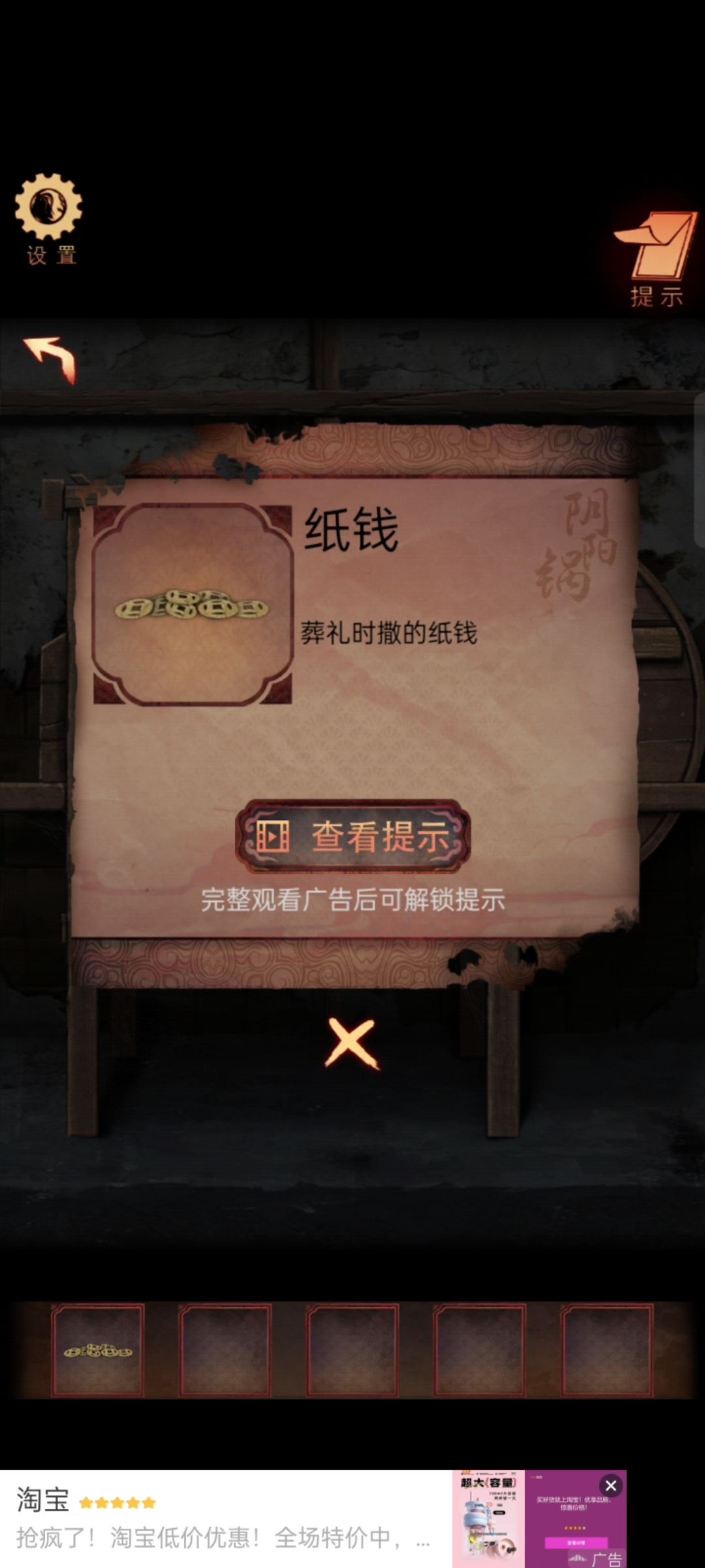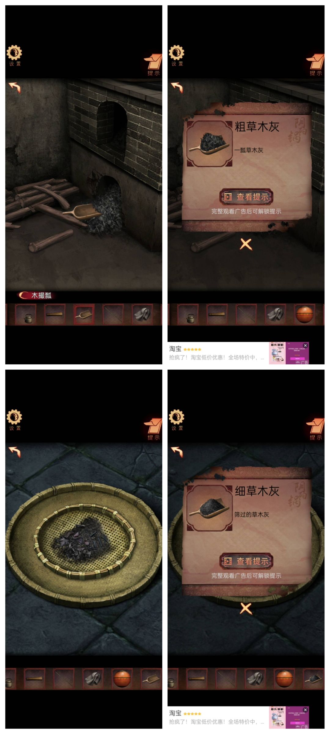 按照水面上的字再敲锣获得衣服,电磁炉放桌上铜锅摆上,竹竿纸钱全放上就结束。