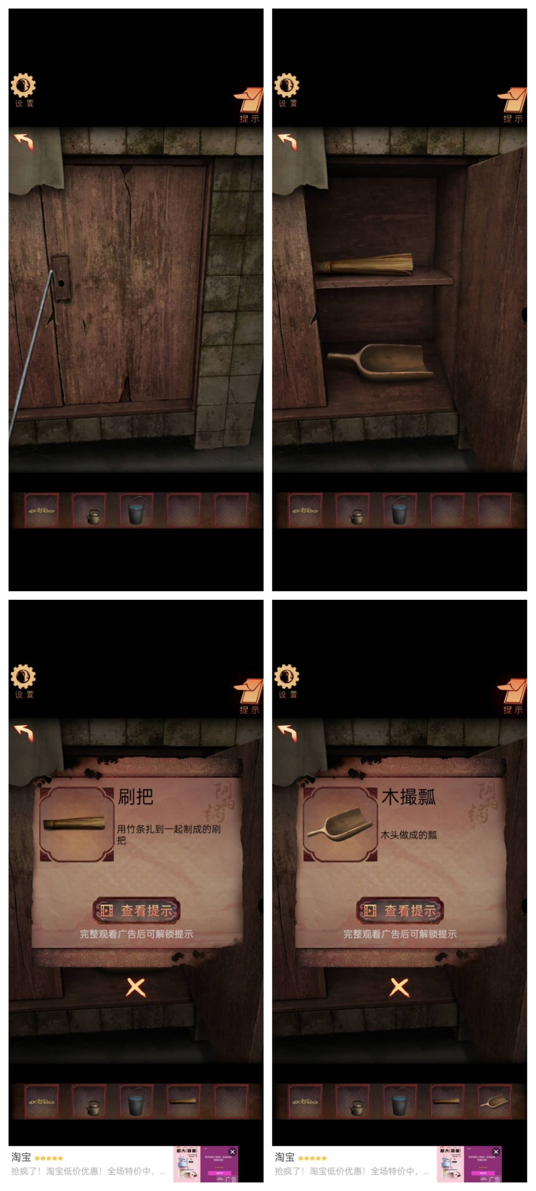 烧火棍撬开柜子获得刷把和木撮瓢