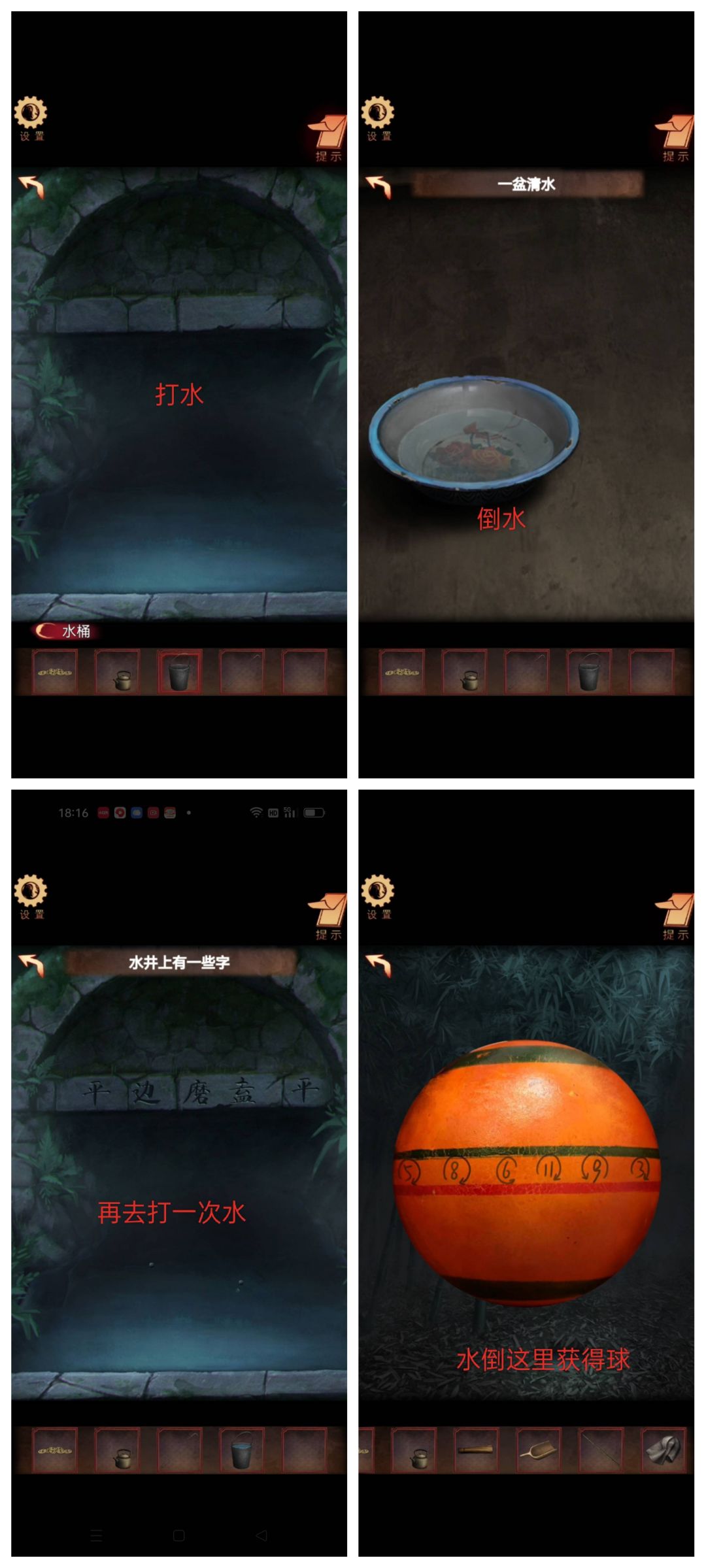 然后打水倒盆里。倒那个洞里获得球