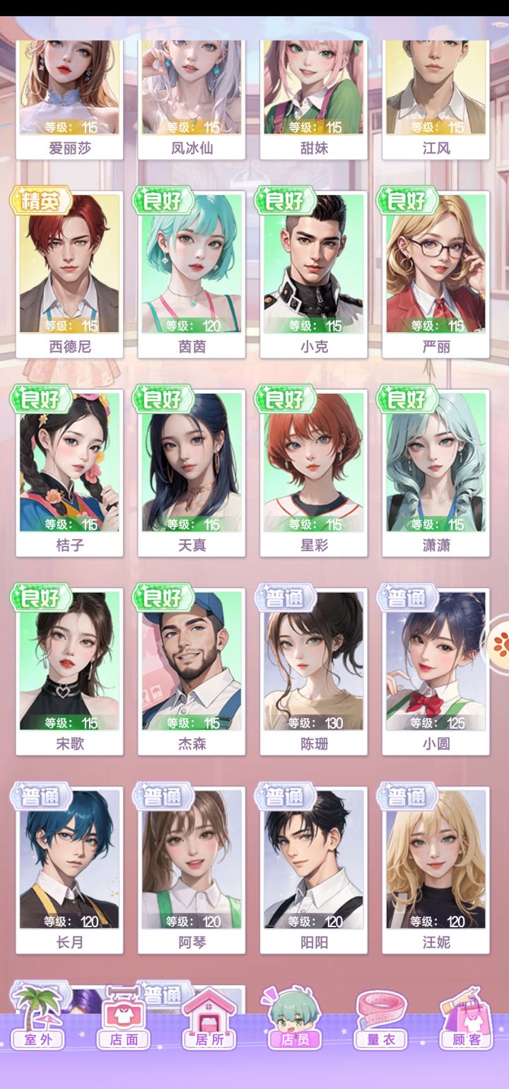 关于店员,其实玩几天就算不充钱也能获得五个精英店员,不管是什么品质的店员,提升等级需要的钞票是一样的,所以店员等级不要差太多,不然完成订单等任务时闪耀值不够,如果不充钱的话后期量衣比较困难。还有一些小建议吧,最好加入协会,协会里面有商店联合设计什么的,一些活动的分值也可以算在协会里,协会有排名,个人可以多拿一些奖励和资源。一开始开箱子比较肝,但等到可以自动开箱子以后就省事多了。其实玩入门以后并不是很肝,就是钱不够,所以我一般都等钱不够了以后就离线。游戏画风挺精美的,元素也很多。最后祝店长们玩的愉快吧🌹