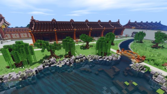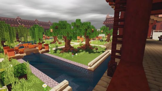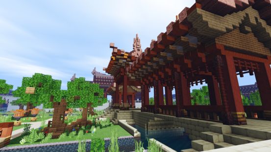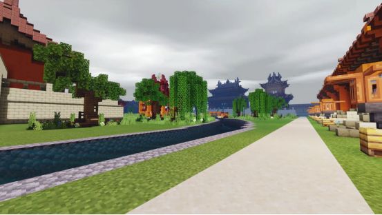 踏上中央的木桥,便马上感受到了远处古风楼阁的威严~