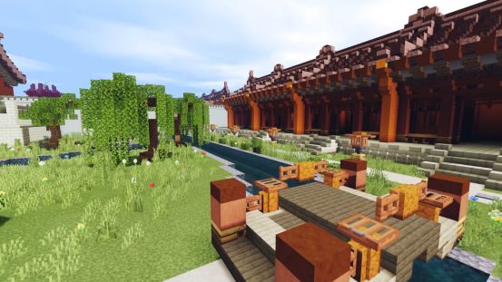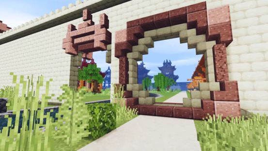 穿过长长的走廊,可以看到院子中整齐地排布着各种绿植物,和左右两排房屋一同整齐地排列,让史莱姆的脚步不禁慢了下来~