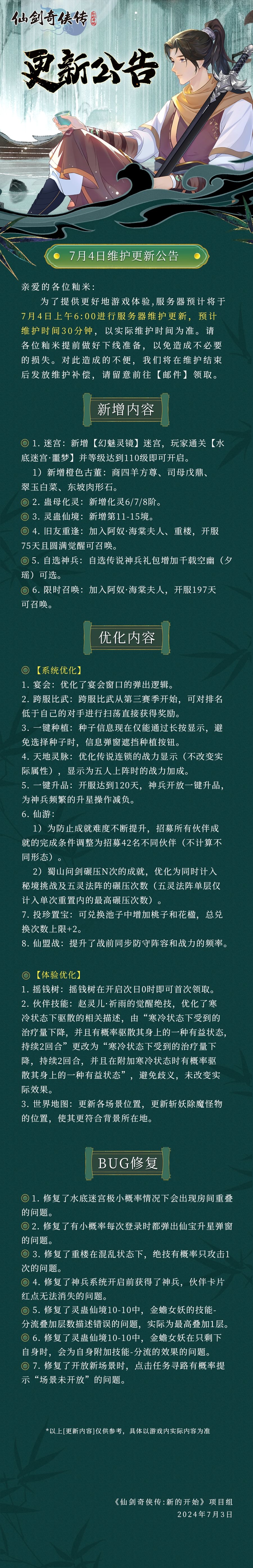 7月4日维护更新公告