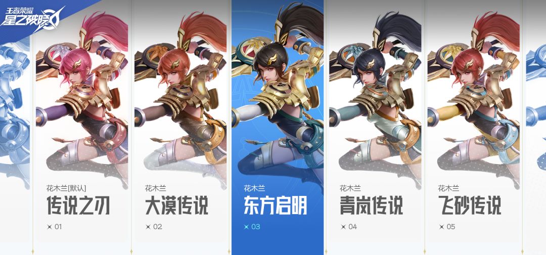 极致潇洒的水晶猎龙者一直是木兰最受欢迎的皮肤之一,除此之外我们也针对她的经典形象做了多种配色的尝试。快来为木兰选择心仪的战衣吧!