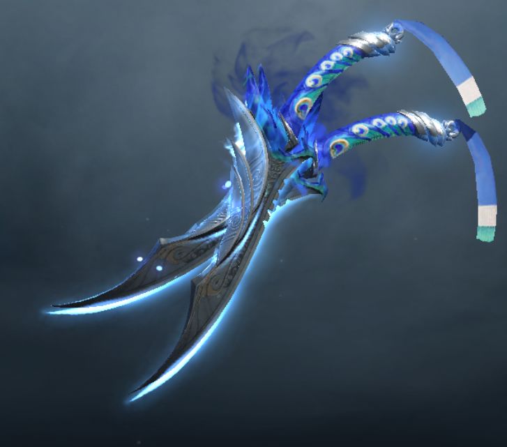 当纯真可爱的精灵少女想要在战场上来一番润物细无声的狩猎,那么精致小巧的匕首肯定是孔雀翎的最爱!这把匕首-孔雀翎的刃锋之间流动着晶莹剔透的蓝光,小小的蝴蝶环绕着匕首,在闪耀的精灵星光之间若隐若现。