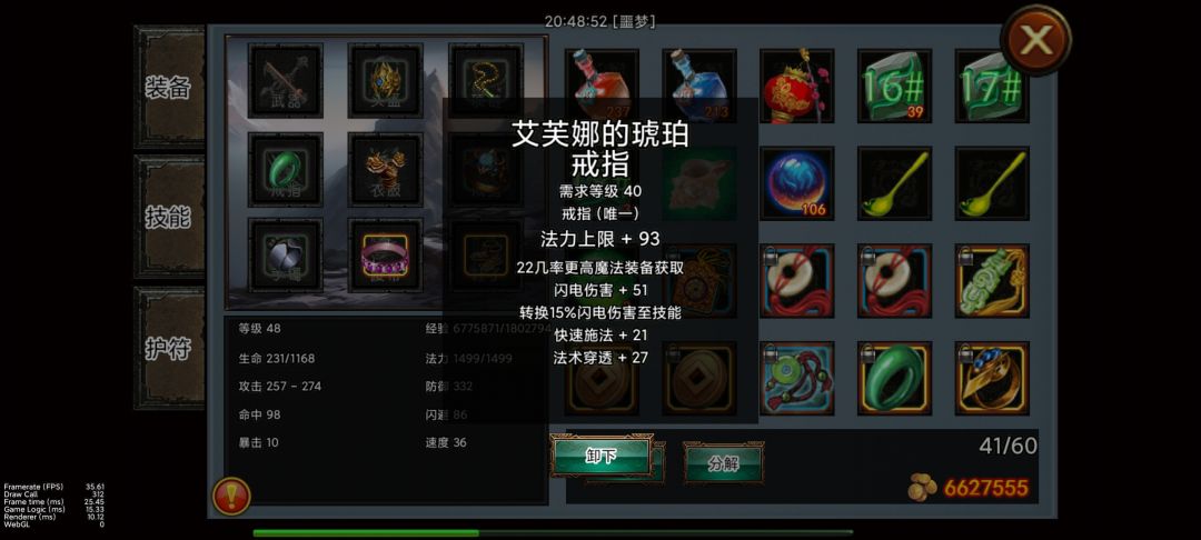 护符方面 选择法穿>150+ 优先电伤。