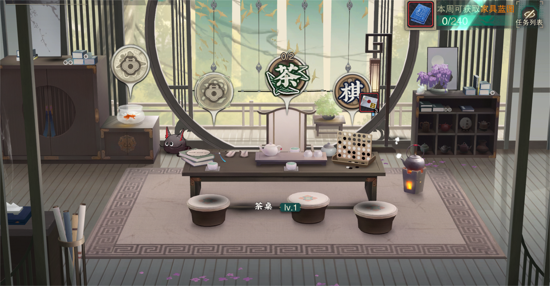 1.3(上)版本开启后,狸猫盘的猫咪将扩大移动范围,在【茶室】与【工作间】也将有概率找到她走丢的猫咪,找到猫咪后可获得来自狸猫盘的谢礼。