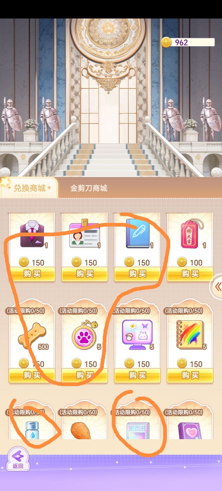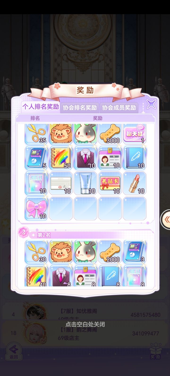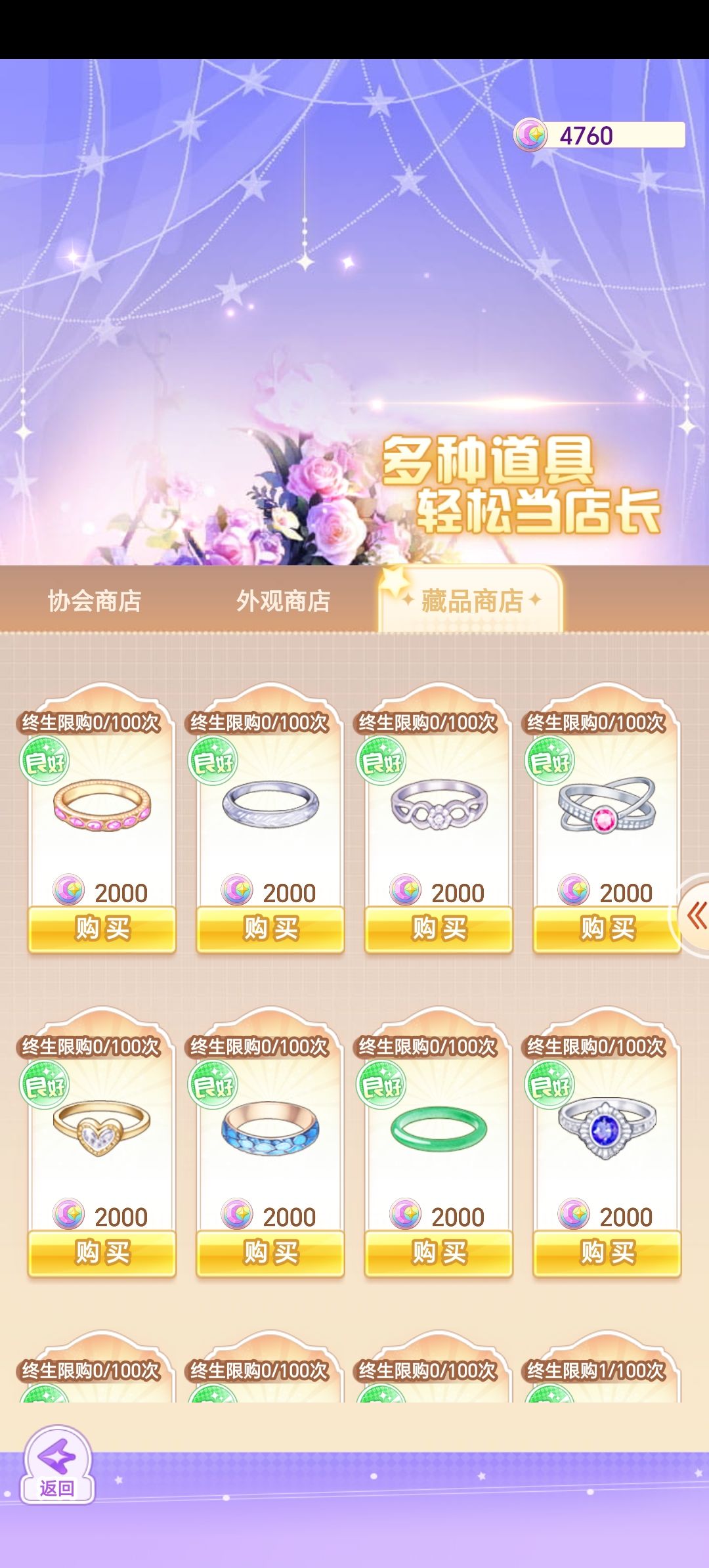 图四第二排第一个是资质书,图六是在协会商店靠平时坐交流会攒下来的右上角的道具换取戒指,都是用于增加员工资质,资质越高,员工等级高,增加的闪耀值也高,协会商店也可以兑换图四的那些闪耀道具哦。
