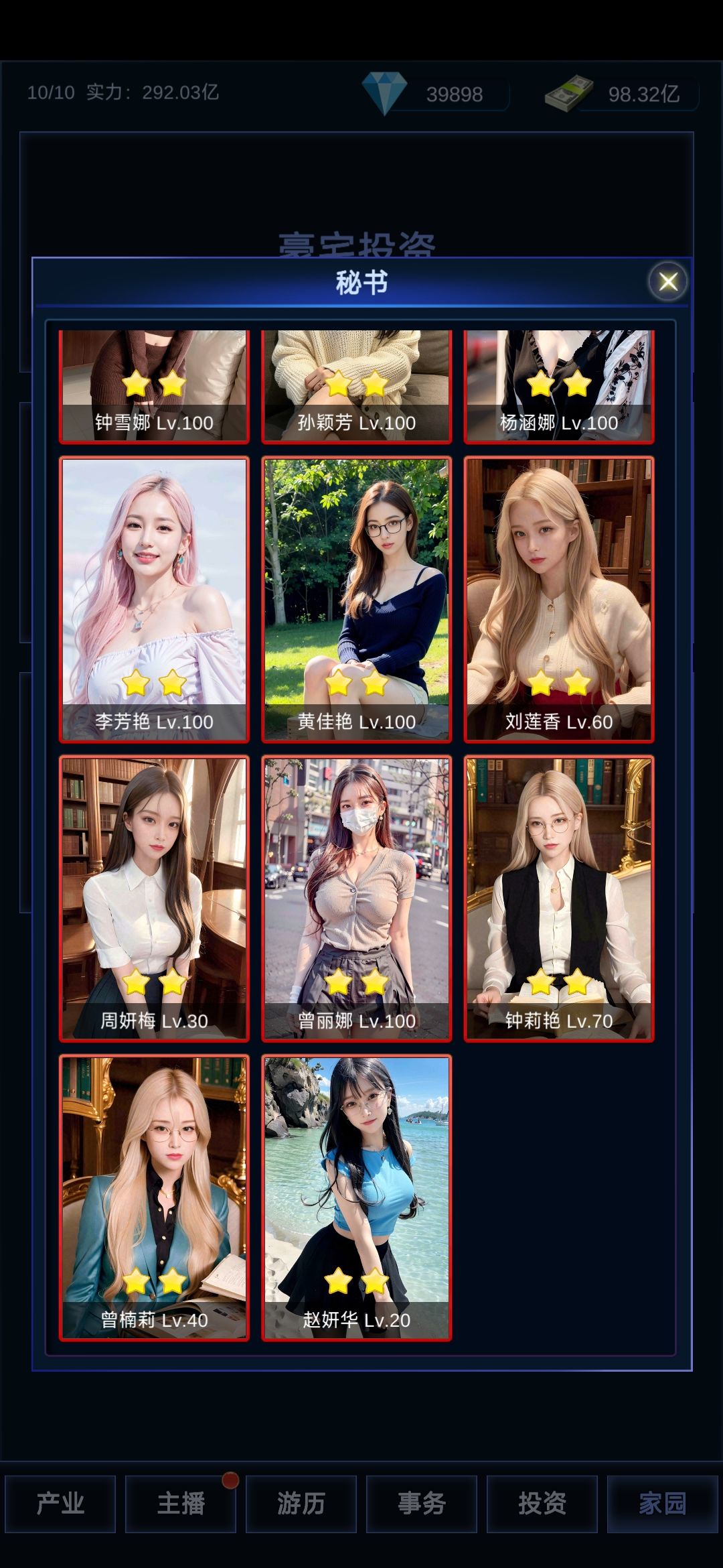 大家看到满星满级满车宠满秘书的都是破解版看看就行,千万别带入,会被坑的,我就是被带歪了,不过还能玩。