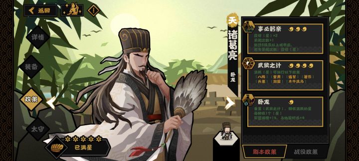 感觉丞相前期好废,不绑定黄月英前期基本发挥不了作用,武侯之计提供的数值又在后期显得像是一个小添头,强度是有的,但总给我一种很强又过于谨慎的憋屈感