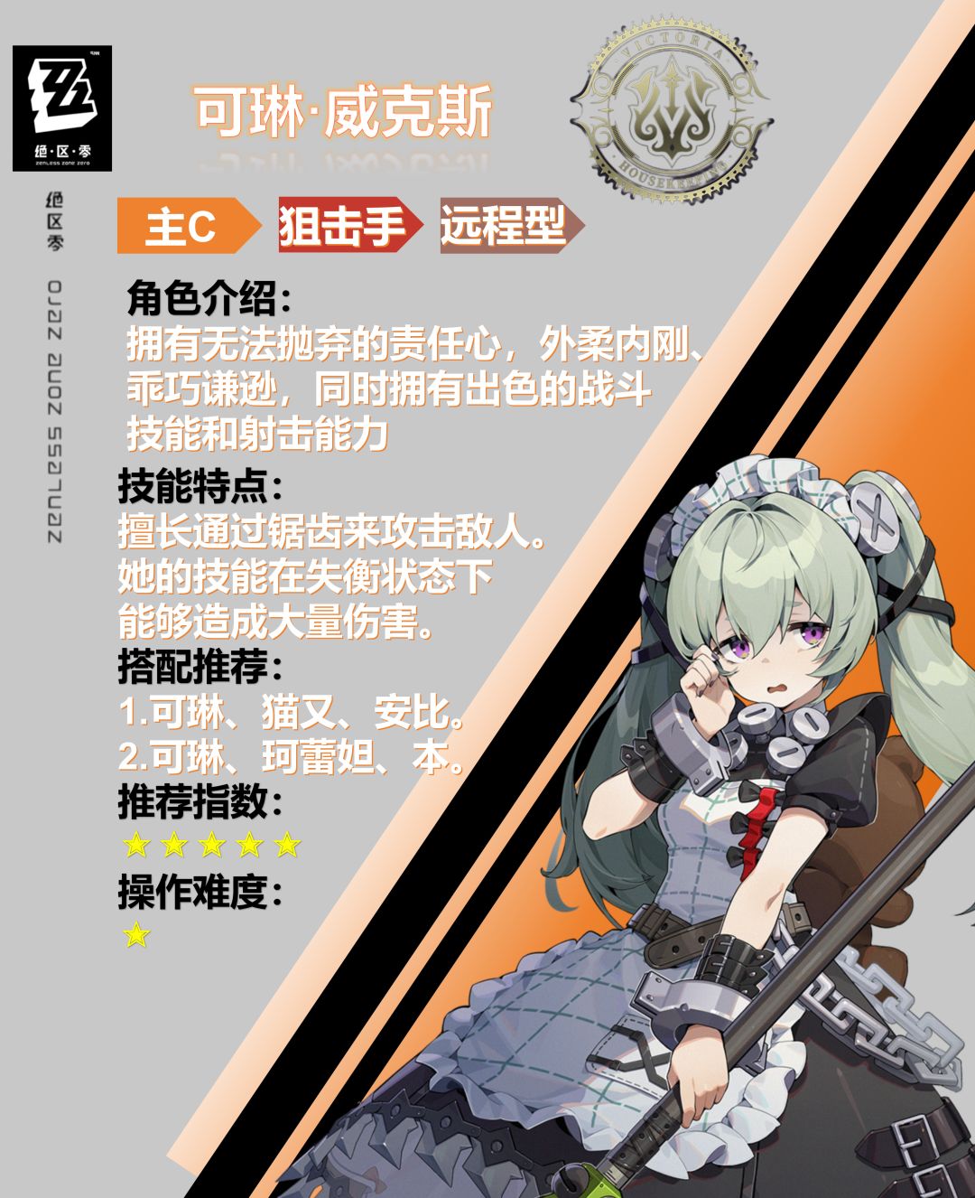 角色定位:一位可以依靠蓄力机制快速击破敌人的代理人。他的战斗风格优雅且干脆,只要将委托派遣给他,通常都能顺利完成。