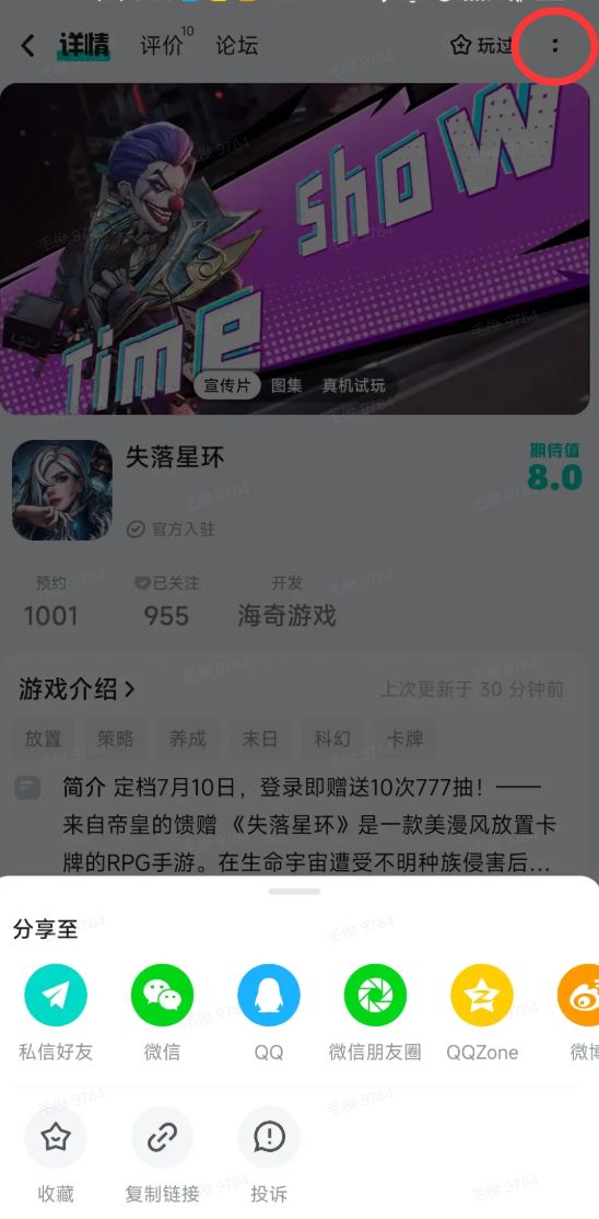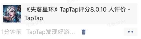第一步:关注游戏,将预约成功《失落星环》截图转发至TapTap以外的任何社交平台;