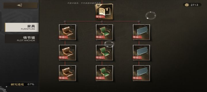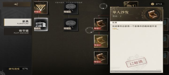 完成以上后就可以进入办公桌科技了,等级6以下的沙发转椅写字板科技,会大大提高卖钱的效率,点满后半天的8-9个事件可以变成11-12个事件,不算分解基本刚好凑够一个紫色情节锚的花费