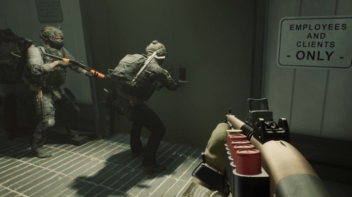 此外,在因为职业因素的自我克制不仅仅体现在鼓励使用非致命武器上,只有当敌人向玩家开火之后,玩家才能够动用火力的反恐规则让追求高评分的玩家成为了最称手的沙包,事实上,在多数情况下,如果玩家不先发制人,那么等待玩家的是黑屏时刻。敌人高强度的AI水平让他们的火力达到了连只蚊子都难逃厄运的地步,往往在几秒钟的时间就足够把玩家打的丢盔卸甲。各种无处遁身的高精度和对战局的快速反应,让一群小混混看起来更像是一伙国际悍匪的扮猪吃老虎,唯一遗憾的是这场游戏的配角是玩家自己。就在这样残暴的敌人面前,还要手动的给自己戴上镣铐让人很难应对。