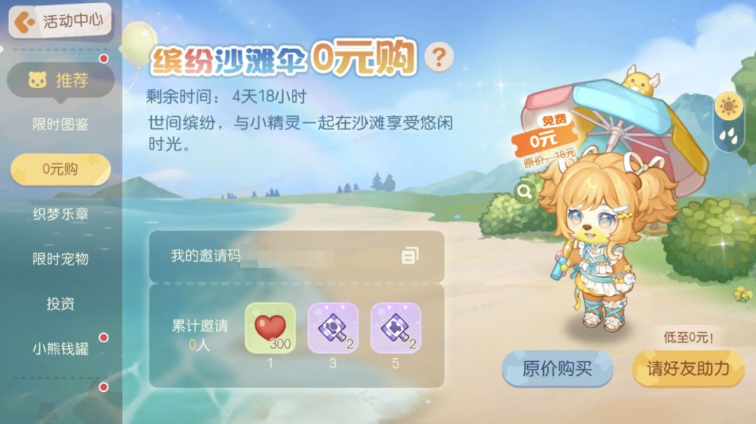限定雨伞「童趣缤纷沙滩伞」限时上架,活动期间参与,最低可以0元购得哦!活动结束后,该礼包也会持续上线至8月1日,心动的小奥比千万不要错过啦。