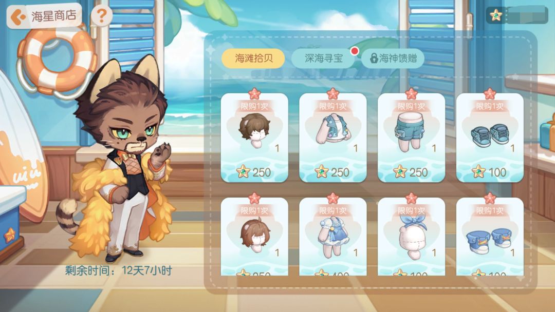 活动介绍:海洋探索部是不会亏待努力探索海洋的小奥比的!在活动期间,只要拥有足够多的「幸运海星」,就可以在这里换取探海活动限定装扮「盛夏海岸套装」和「缤纷夏日套装」、还有「俏皮小鱼发夹」、「生气的刺豚头套」等装扮散件和「水手海蓝小床」、「水手帽子小椅」、「水手小船柜」等家具奖励。