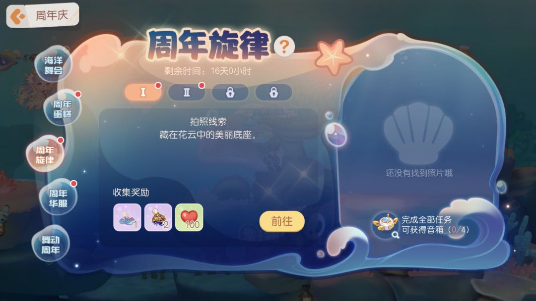 活动介绍:周年庆即将到来,风中也传来了庆贺之音,快和希尔达一起用照片收集彩虹中的旋律吧,收集完成还能获得音箱「魔仙八音盒」和友情树「珊瑚友情树」、「二周年星海蛋糕」。