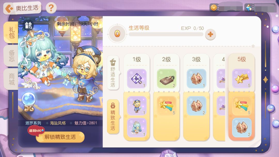 活动介绍:「奥比生活」塔罗生活系列第二期上架,舒适生活、精致生活、豪华生活三种礼包随心选择!